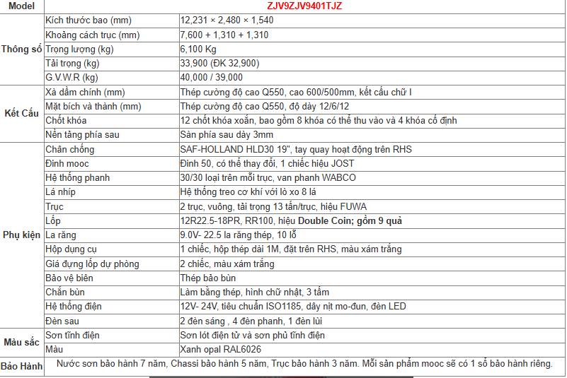 7. Báo giá sơ mi rơ mooc xương CIMC 40 feet 3 trục đời 2025