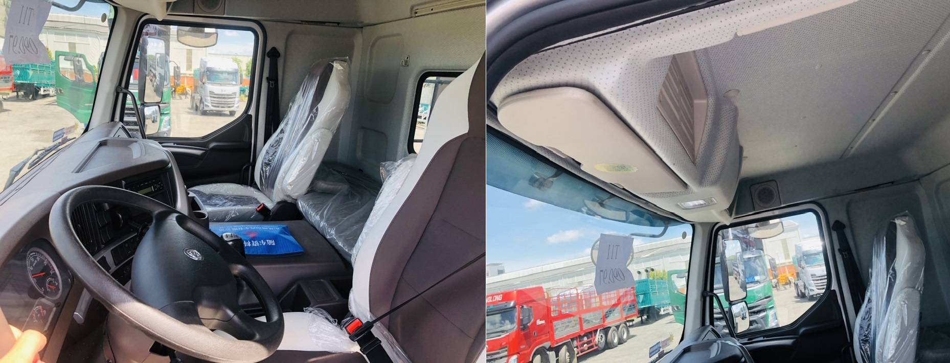 - Cabin nhiều cải tiến tương tự như của đầu kéo: ghế lái bóng hơi, gương chỉnh điện, gương có thể sấy khô bằng điện, điều hòa tự động...