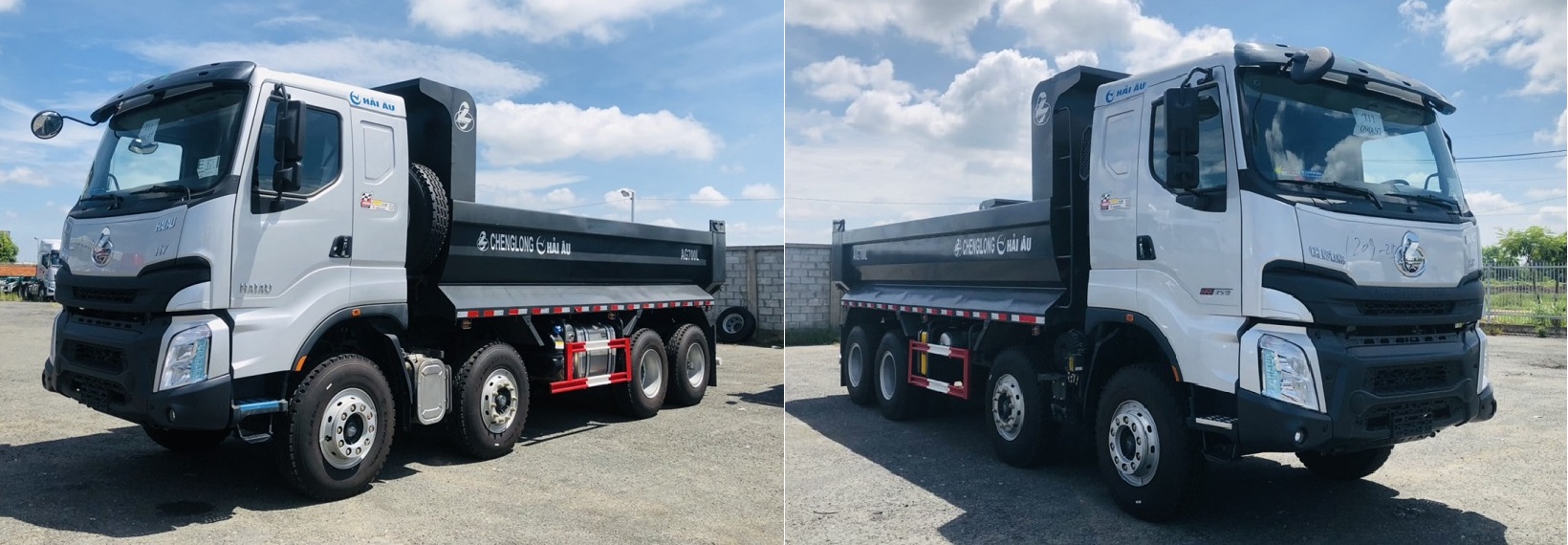 Hình ảnh xe ben chenglong 4 chân thùng u (thùng vát) 2024: