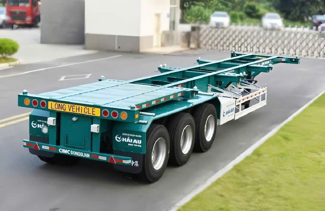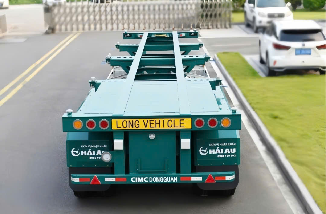 Sơ mi rơ mooc xương CIMC 40 feet 3 trục 12 khóa lốp 12R22.5 đời 2025 là sản phẩm mới nhất của CIMC – thương hiệu nổi tiếng toàn cầu về thiết bị vận tải và sơ mi rơ mooc. Đây là dòng sản phẩm được thiết kế chuyên biệt để chở container 20 feet, 40 feet hoặc hàng siêu trường, siêu trọng với khả năng chịu tải cao, bền bỉ và tiết kiệm chi phí vận hành.
