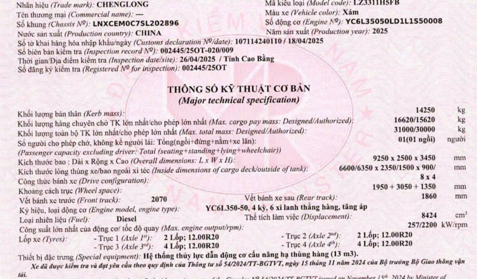 Ghi chú: Chi phí lăn bánh Xe Ben Chenglong 4 Chân chỉ mang tính chất tham khảo. Phần chi phí này không bắt buộc bên phía chúng tôi làm, Quý khách có thể tự đăng kí hoặc tự liên hệ dịch vụ ngoài.