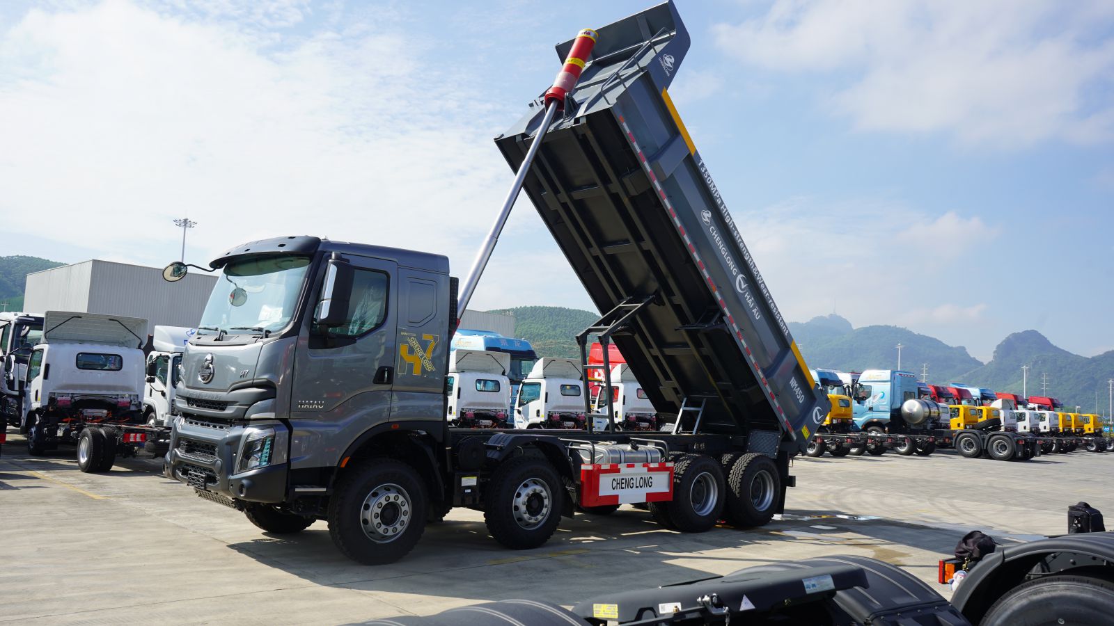 Với cấu hình 8x4 cầu dầu, động cơ Yuchai 390 mã lực cùng hệ thống khung gầm chắc chắn, Chenglong H7 đáp ứng tốt các nhu cầu vận chuyển vật liệu nặng như đá, cát, đất san lấp, quặng trong môi trường công trường và mỏ đá.