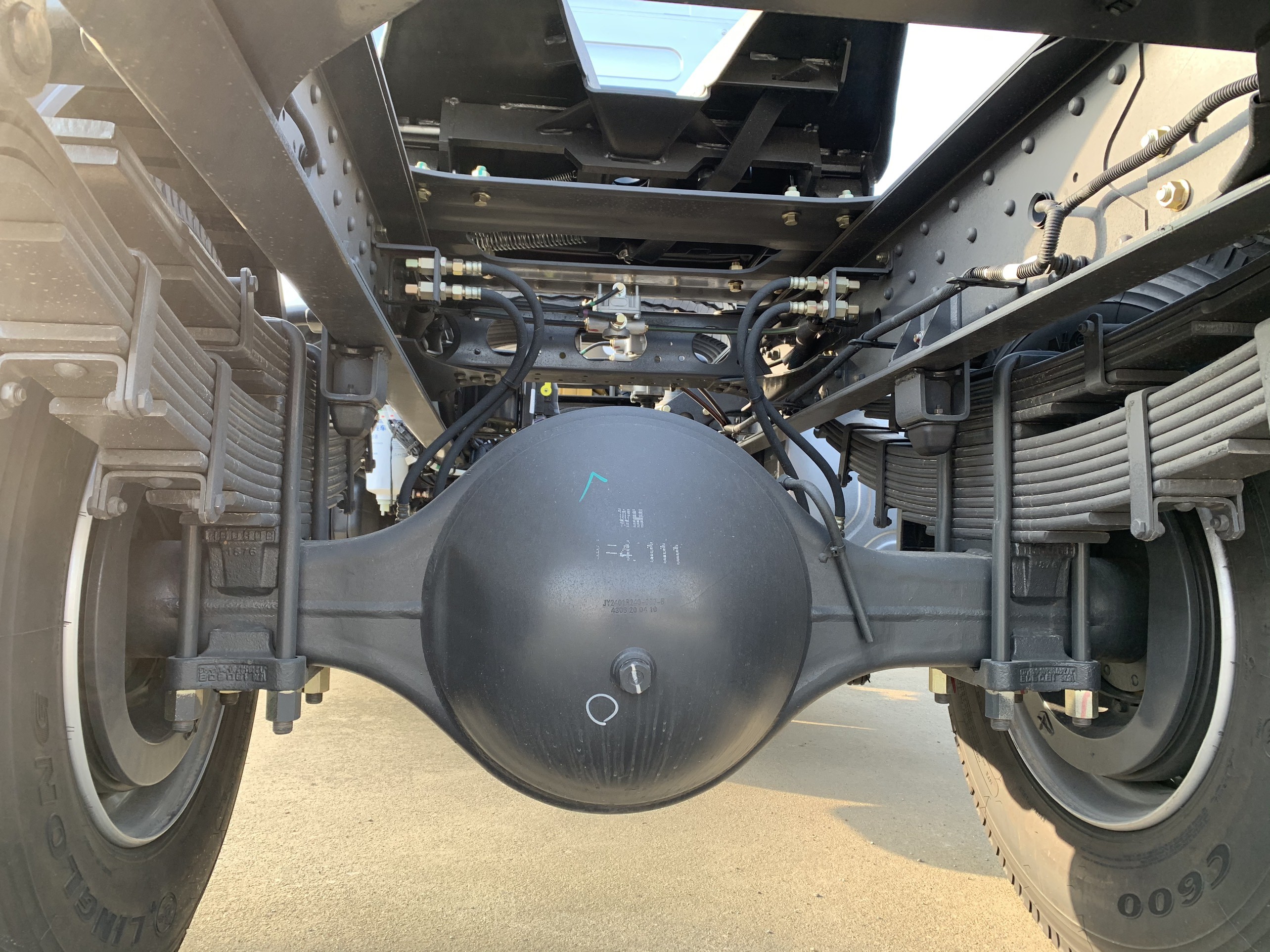 Hệ thống khung gầm sử dụng công nghệ xe tải nặng tối ưu loại hình thang 2 lớp, tiết diện chữ U 282(8+4) mm, chassis nguyên khối thiết kế khoa học, chống giãn nở trong mọi điều kiện thời tiết.